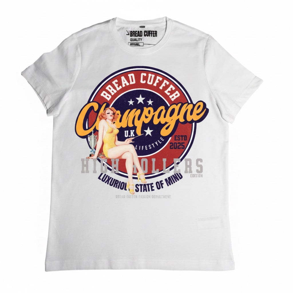 The Bread Cuffer Champagne Lifestyle tee is for those who know their worth. Bold graphic design meets premium comfort in this statement piece that turns heads and starts conversations. Printed fresh to order on enzyme-washed fabric that feels as luxurious as it looks.