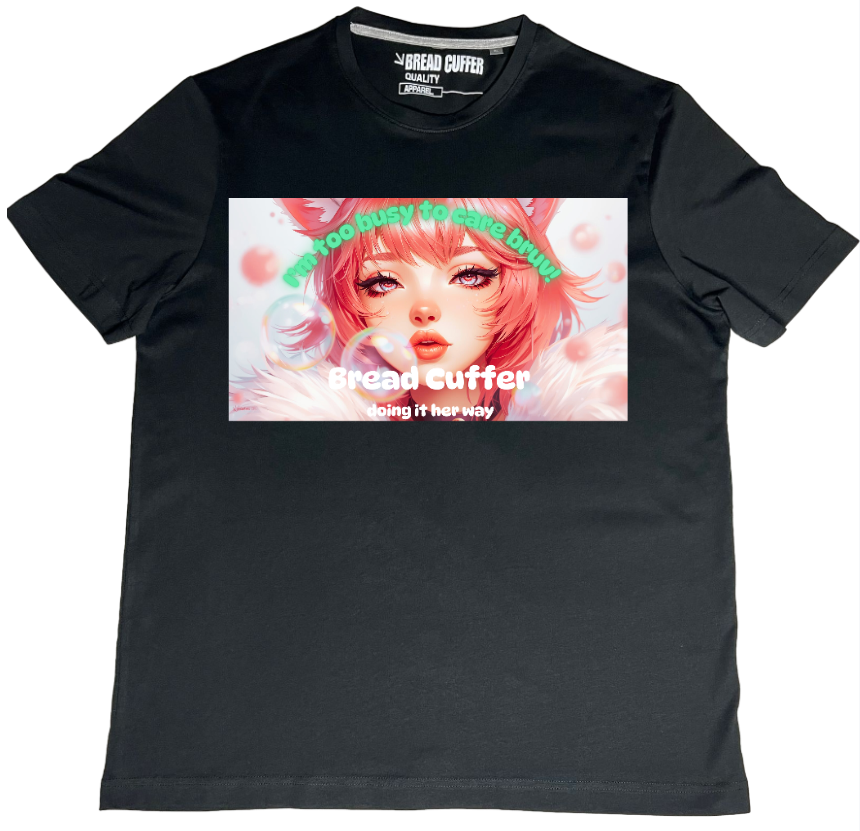 The Bread Cuffer Too Busy To Care tee is for women who are on a mission. Bold attitude meets premium comfort in this statement piece that tells the world you've got priorities and distractions aren't one of them. Printed fresh to order on enzyme-washed fabric that keeps up with your hustle.