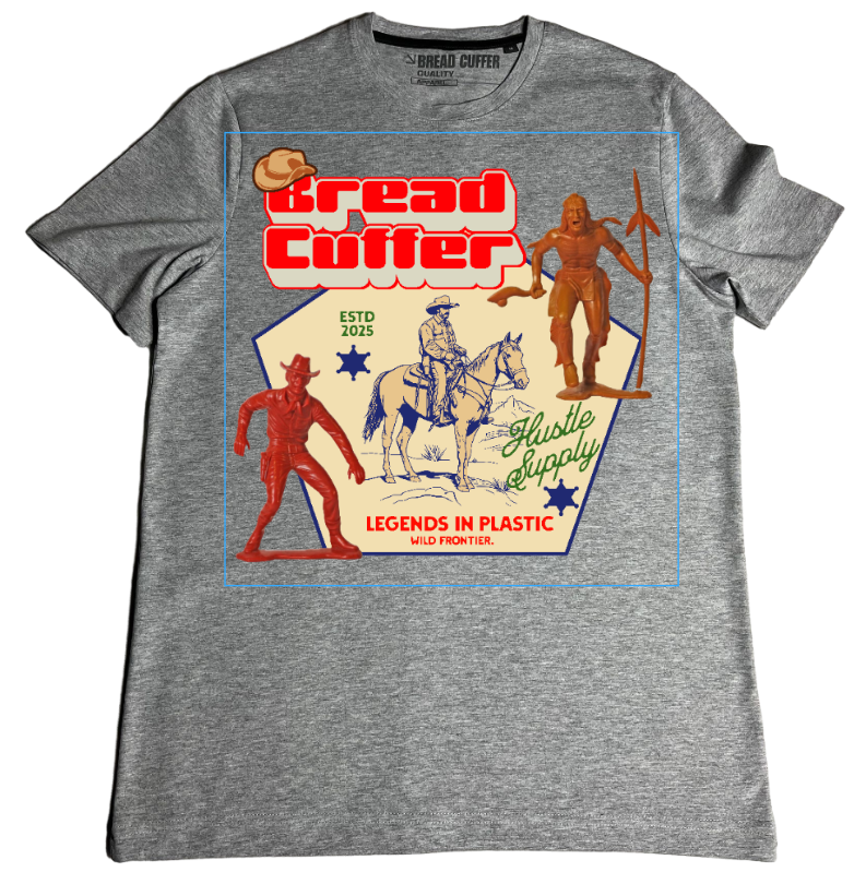 The Bread Cuffer Legends In Plastic: Wild Frontier tee celebrates the iconic action figures and untamed spirit that shaped a generation. Bold nostalgic graphic meets premium comfort in this statement piece that honors the legends of the wild frontier. Printed fresh to order on enzyme-washed fabric built for modern adventurers.